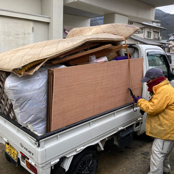 ふすま、障子、ドア、布団たくさん、を午前午後に分けて積み込みました。